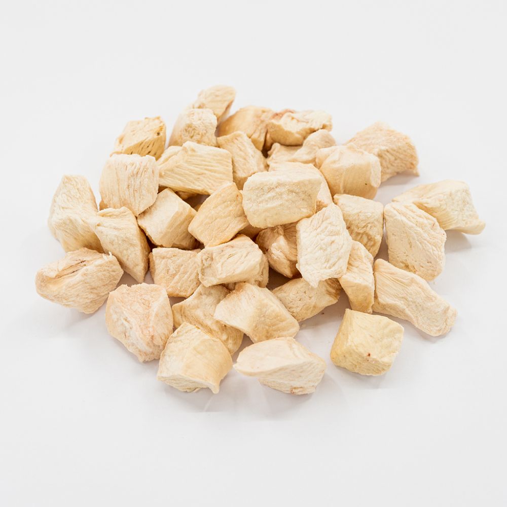 Mrazem sušený (lyofilizovaný) velmi chutný a zdravý pamlsek vhodný pro psy a kočky, bez konzervantů, barviv a dochucovadel. Kuřecí prsa jsou jedním z nejlepších a nejlépe stravitelných zdrojů bílkovin. Obsahují plnohodnotné bílkoviny, které jsou zdrojem všech potřebných aminokyselin. Vysoký podíl libové svaloviny a nízký podíl tuku a vazivových částí.